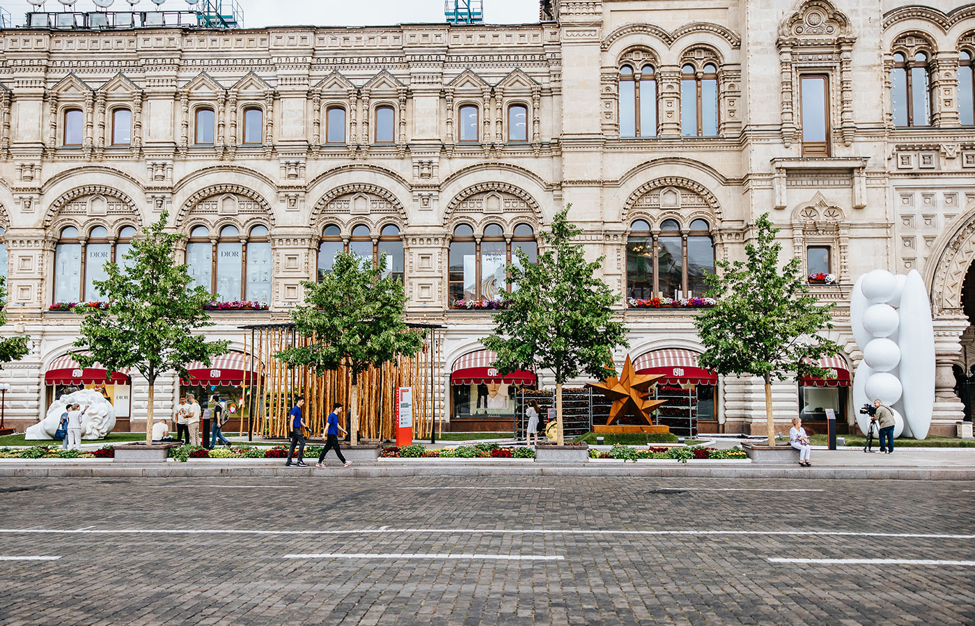 С 1 июля по 12 сентября 2021 пространство у стен ГУМа на Красной площади превратилась в сад скульптур. В выставке паблик-арта принимают участие российские художники (по порядку расположения скульптур слева направо).